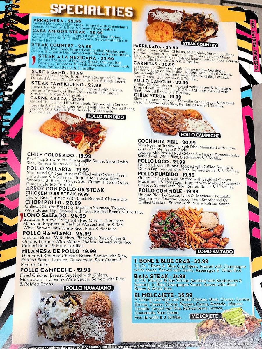 Start your culinary journey with appetizers like Table Side Guacamole and Queso Fundido. Each offering bursts with vibrant ingredients and rich textures. Move on to specialties such as the Casa Amigos Steak, featuring a juicy ribeye topped with grilled shrimp and chimichurri sauce, or the tender Milanesa De Pollo.